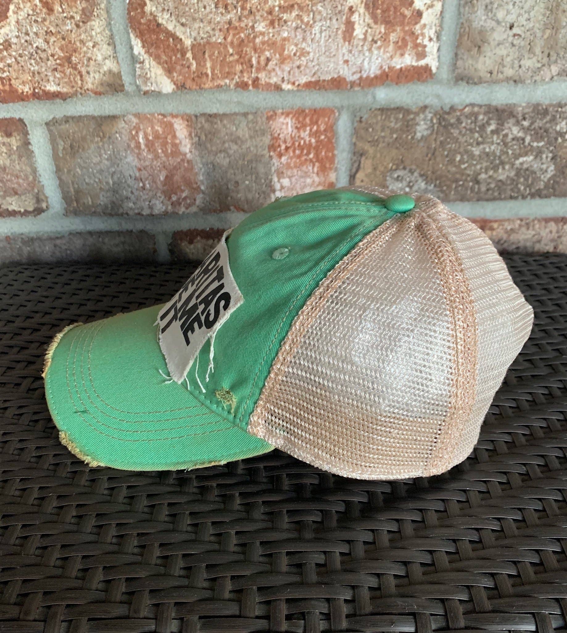 Distressed, vintage feel baseball hat. This super-soft Margaritas Made Me Do It Cap is sure to put some happy in your day! It is a custom creation by BohoGroove featuring a weathered snap back in green and an oversized Margarita logo. It is simple and to the point!