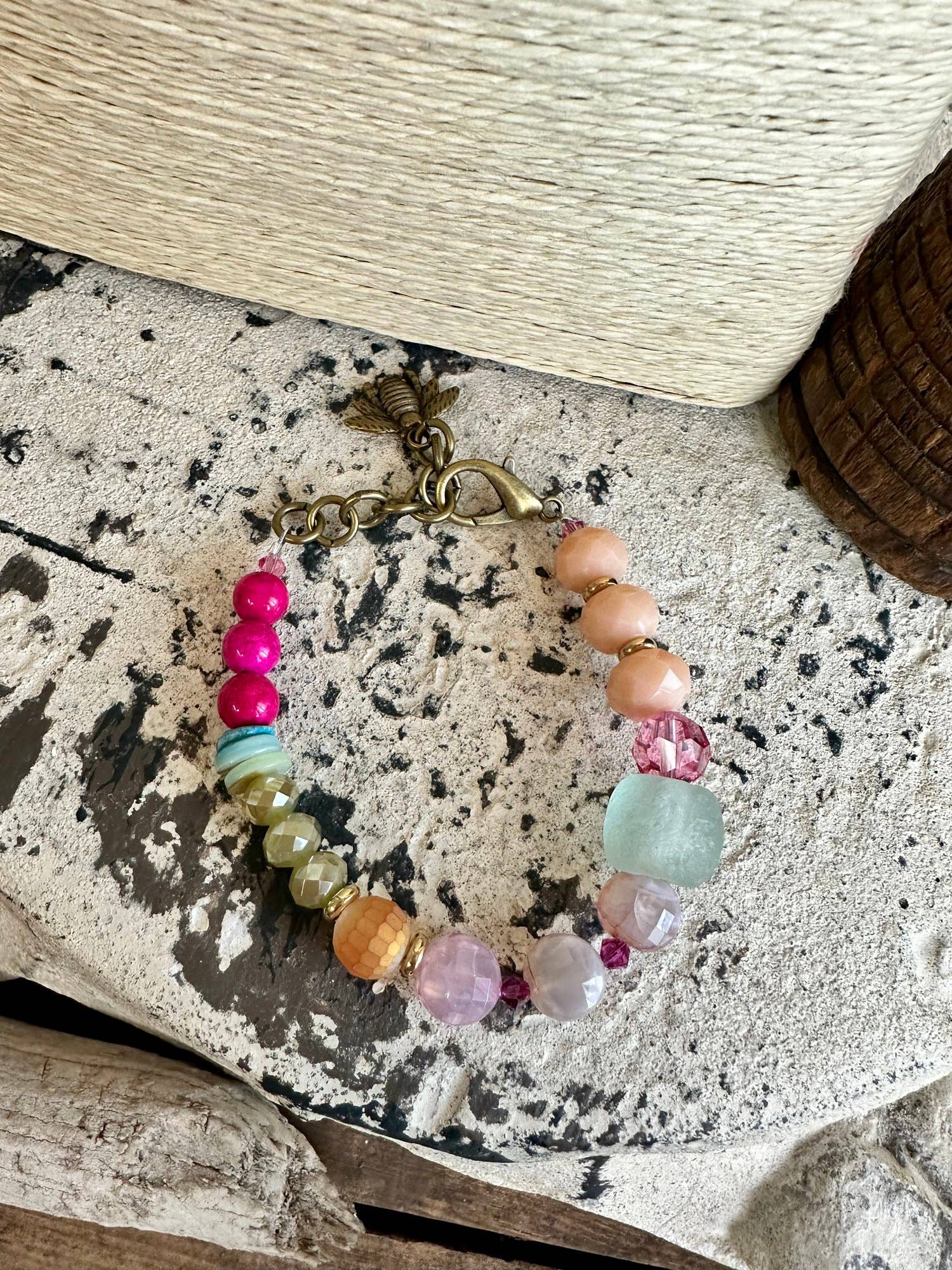 Rainbow Sorbet 7.5-8.5" adjustable length This Rainbow Sorbet Collection has great color and design. It has so many textures and layers it is unique and has lots of color. This is the perfect collection to take you right into the spring and summer. This is a customer favorite and top seller.