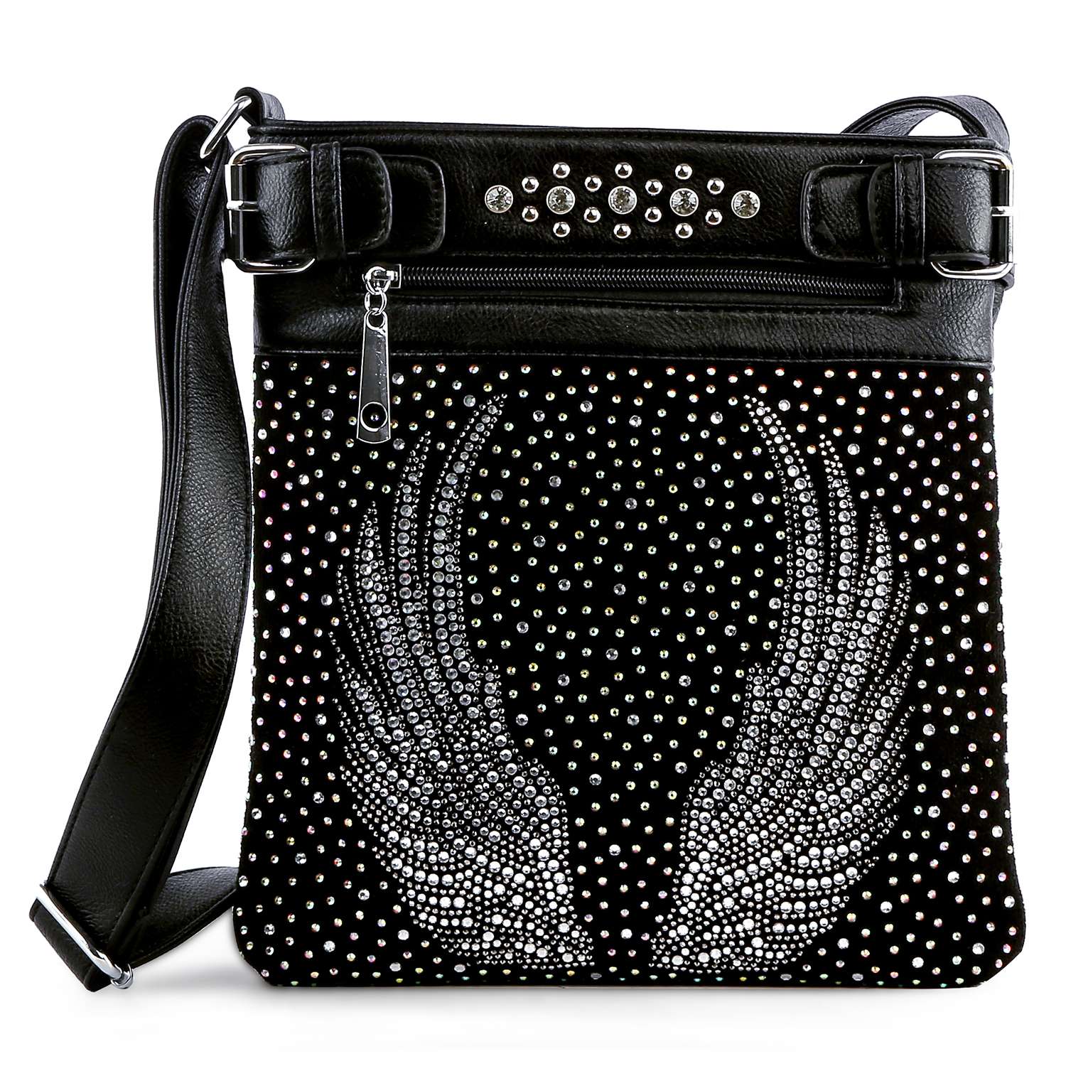 A real sparkler! The entire ultra suede front is covered with a field of iridescent rhinestone stars, with a large set of sparkling wings as a highlight.